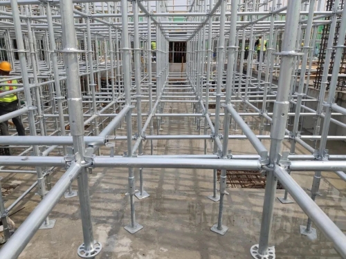 盤(pán)扣式腳手架使用壽命長(zhǎng),盤(pán)扣式腳手架采用統(tǒng)一的熱鍍鋅進(jìn)行表面處理,這種不掉漆不生銹的表面處理方式除了減少高額的保養(yǎng)成本以外,外觀一致,大氣美觀的銀色也為工程提升了形象。鍍鋅的表面處理方法延長(zhǎng)了鋼管壽命到15-20年。