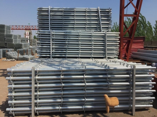 盤扣式腳手架的尺寸規(guī)格多樣,主要包括立桿直徑、橫桿長(zhǎng)度、步距(即上下兩層橫桿之間的距離)以及盤扣間距等。常見的立桿直徑有48mm、60mm等,這些直徑的鋼管經(jīng)過(guò)處理,具有較高的承載能力和穩(wěn)定性。橫桿長(zhǎng)度則根據(jù)施工需要而定,通常有0.6m、0.9m、1.2m、1.5m等多種規(guī)格可選。步距一般標(biāo)準(zhǔn)化為1.5m或1.8m,以便適應(yīng)不同層高和作業(yè)需求。